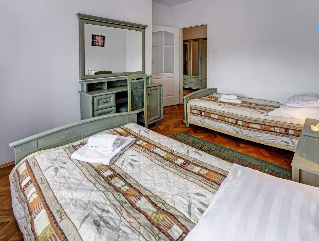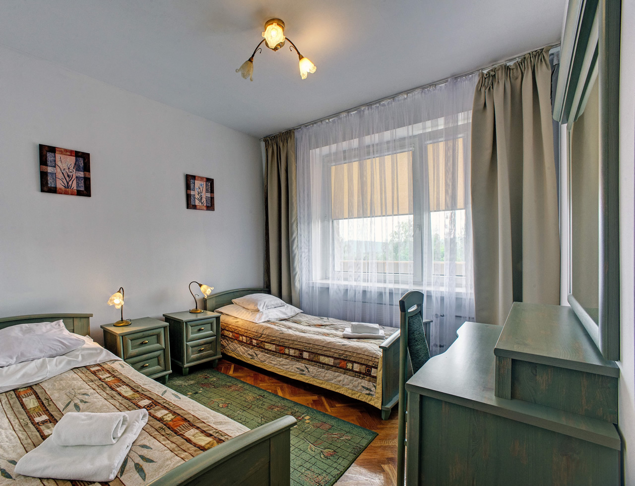 Pokoje 1 i 2 os. - standardPokoje 3 i 4 os. - standardApartamenty typu suite Apartamenty typu suite chevron_right chevron_left Wyposażenie: dwa osobne pomieszczenia – pokój wypoczynkowy i sypialny, przestronna łazienka balkon ręczniki telewizor LCD radio czajnik elektryczny lodówka